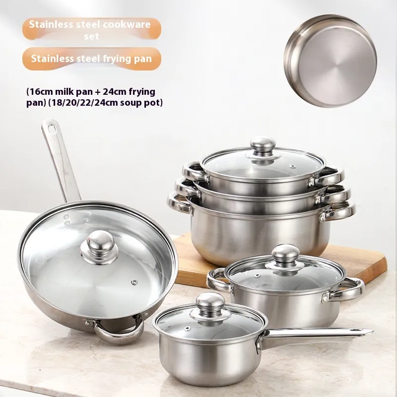 The Color Stainless Steel Pot and Pan Suit is made from high-quality stainless steel, ensuring that the cookware is durable, rust-resistant, and able to withstand the rigors of daily cooking. The stainless steel material provides excellent heat conductivity, ensuring even cooking and reducing the risk of hot spots. This makes it the ideal choice for a variety of cooking tasks, from quick stir-fries to slow-simmered soups.