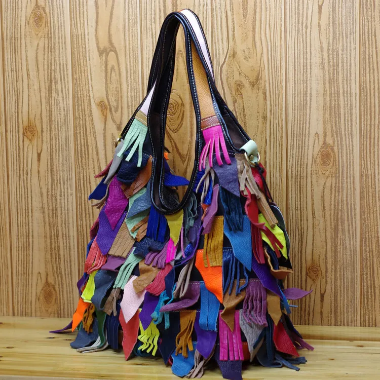 Why Choose the Colored Top Layer Cowhide Tassel Shoulder Bag?