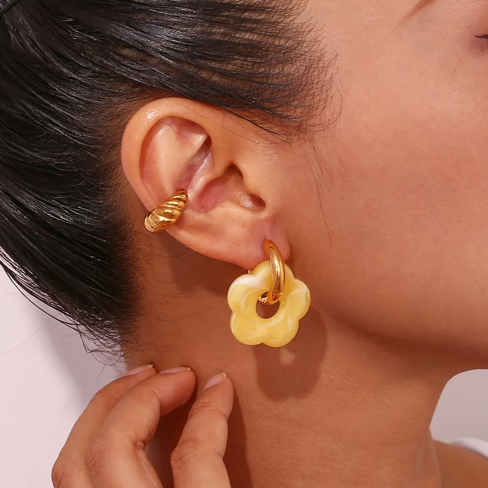 These floral earrings pair beautifully with dresses, tops, or casual outfits. Their minimalist design makes them suitable for layering with other jewelry pieces or wearing solo for a simple, elegant statement.