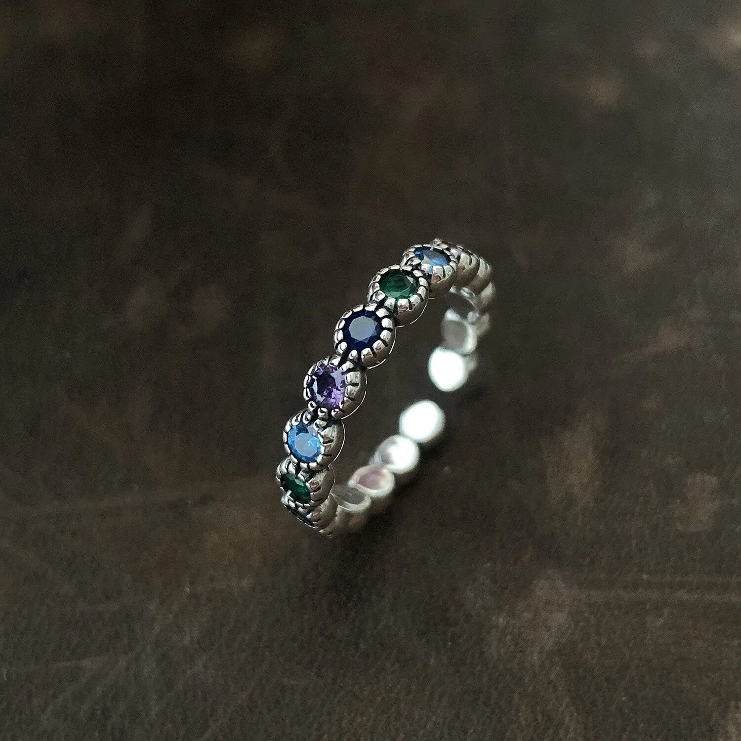 Ideal for pairing with dresses, casual outfits, or layered with other rings for a chic statement. Its colorful zircon stones make it a versatile accessory for any wardrobe.