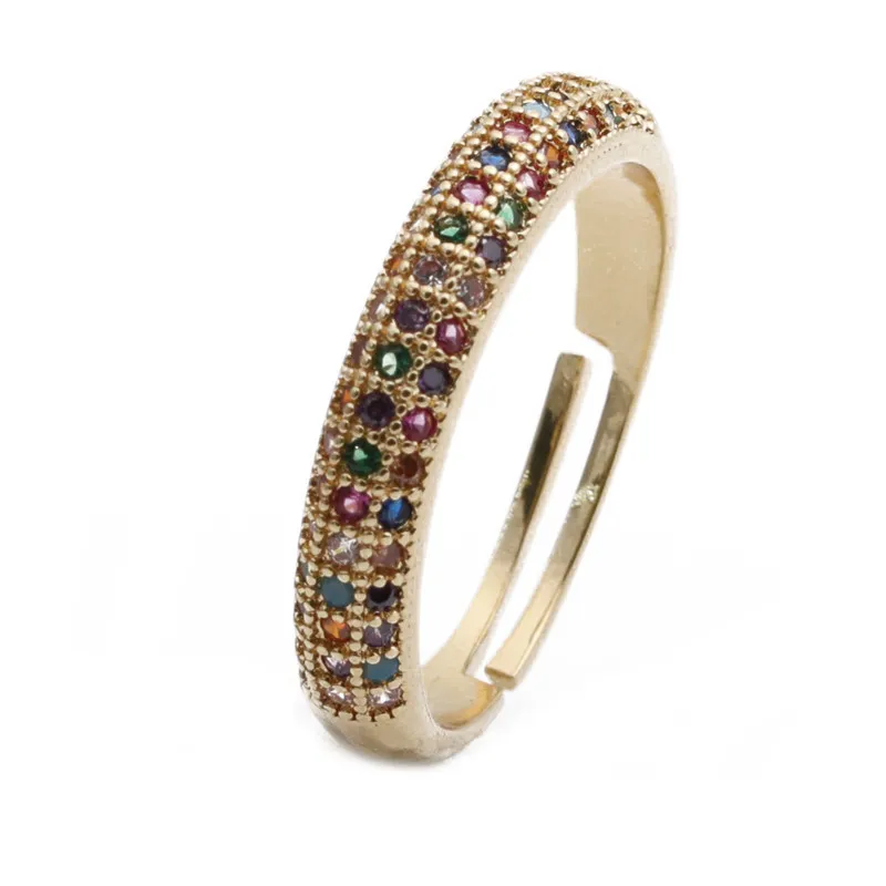 Colorful Zircon Jewelry Micro Setting Gold Adjustable Ring Women