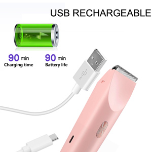 - ăUSB Rechargeable & PowerăElectric bikini trimmer can be fully charged in just 5 hours with USB convenience charging, available for up to 60 minutes cordless use under the highest speed mode. Lightweight and portable. Convenient for travel.