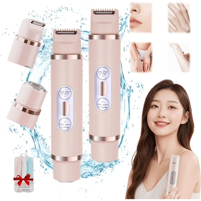 - ăDUAL-HEAD HAIR TRIMMER FOR WOMENăThe Glow Aura Womens Shaver features a 2-in-1 body shaver and facial shaver, providing versatile grooming with a versatile tool. No need for blade replacementsâthis electric lady bikini shaver allows for easy and efficient touch-ups anytime, anywhere