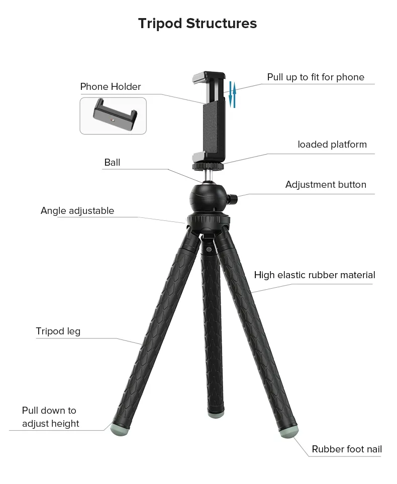 Compatible with Apple, Convenient camera phone telescopic tripod