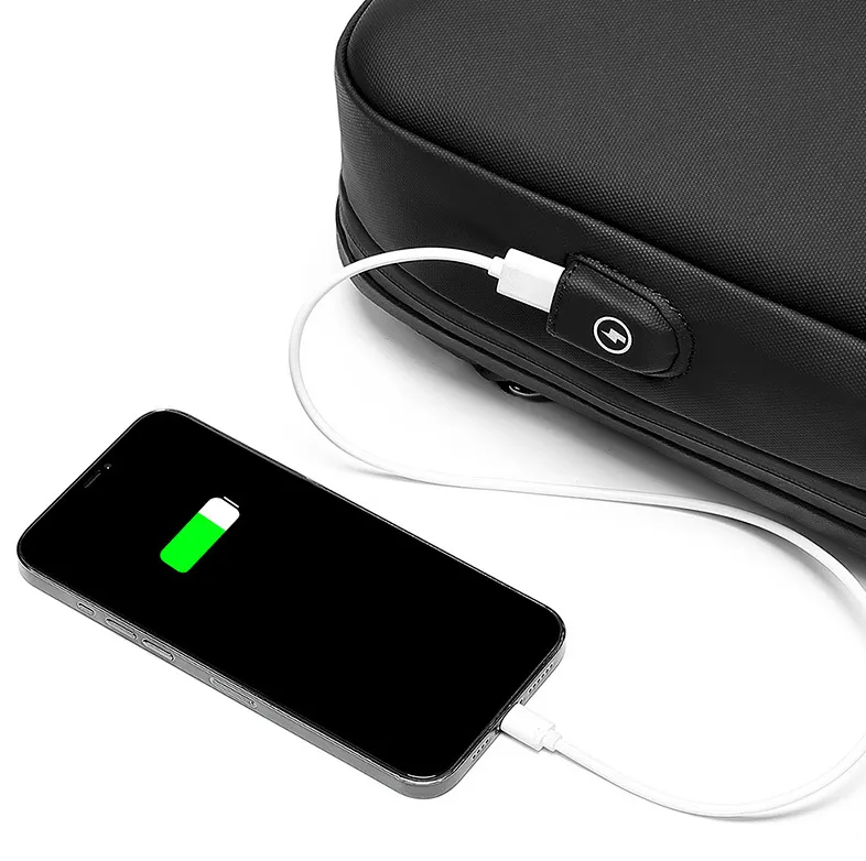 The Rowe crossbody bag also includes a USB charging port, allowing you to charge your devices anytime, anywhere, without needing to dig through your bag. Its ergonomic design and adjustable sling strap make it comfortable to wear as a shoulder or chest bag, and the compact yet spacious interior offers organized storage for phones, wallets, keys, and other daily essentials. The minimalist design and high-quality materials ensure durability and style, making it a versatile choice for both professional and casual looks.