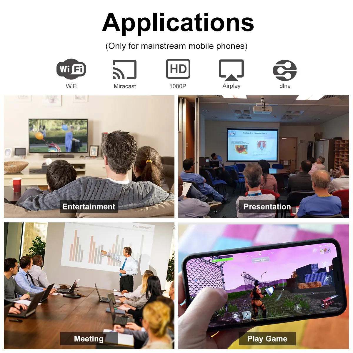 From work presentations to home entertainment, the Wireless Screen Projector adapts to a variety of environments. It’s perfect for business meetings, classroom settings, parties, or simply relaxing at home.