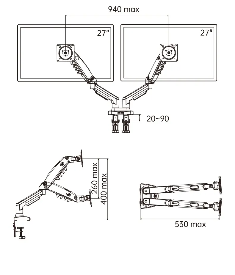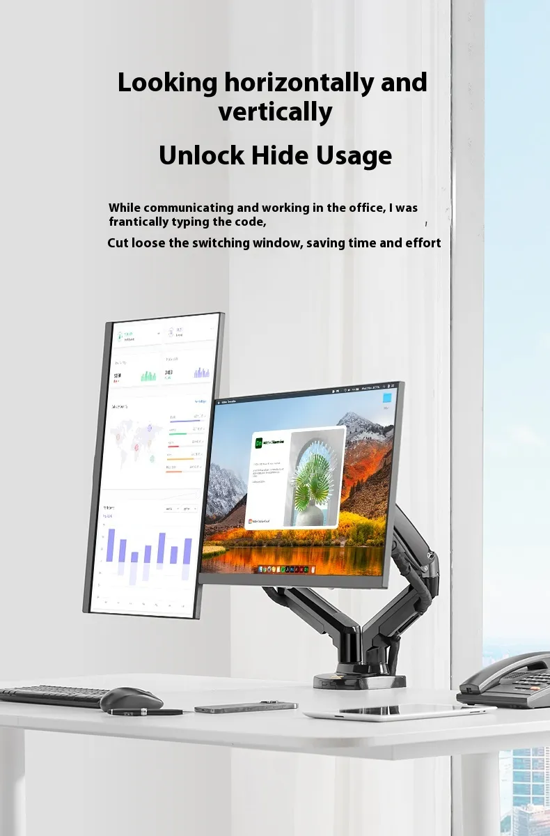 The rack features a smooth up-and-down lifting mechanism, enabling precise height adjustments for each monitor. Perfect for multi-tasking, coding, gaming, or office work, it ensures your screens are always at the optimal viewing position for maximum comfort and productivity.
