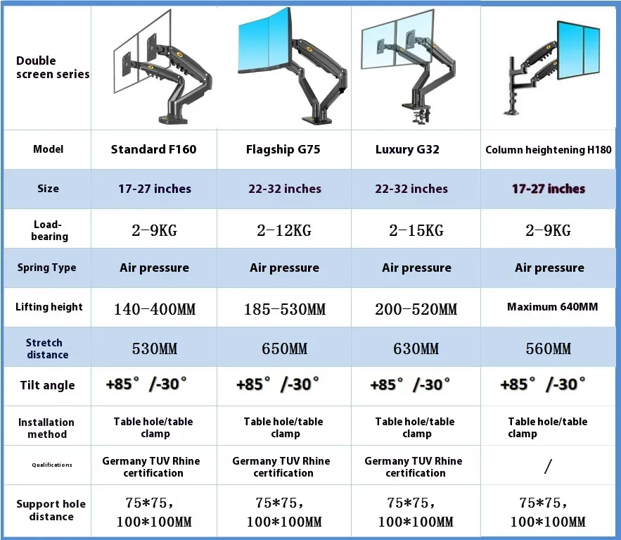 gray support 22-32 inches load-bearing 2-15kgthin long arm G32, gun black support 17-27 inches load-bearing 2-9kg27 inches stackable H180,