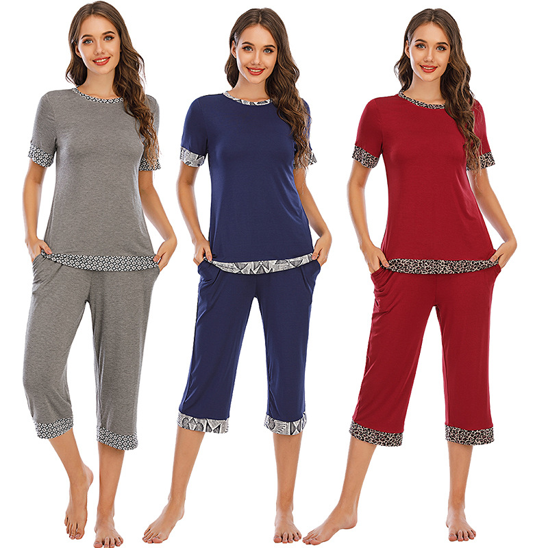 Contrast Color Comfort And Casual Breathable Pajamas Suit