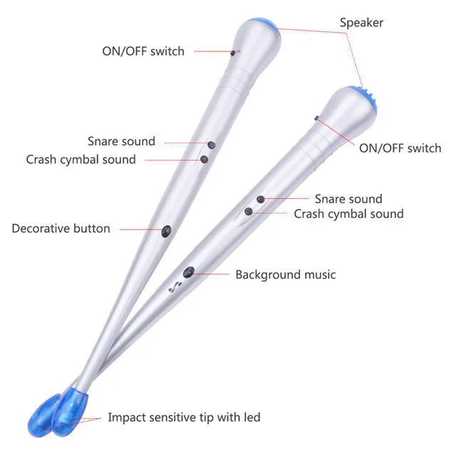 The new type of educational toys, with every tap, a cool red LED illuminates the tip of each drumstick.