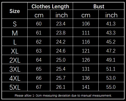Size: S,M,L,XL,2XL,3XL,4XL,5XL