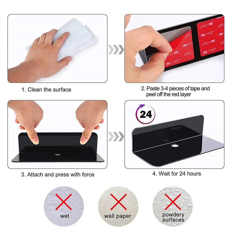 1. The Small Wall Shelf is Made of High-quality Acrylic, Has a Beautiful Appearance and Decorative Effect, and is Fixed With a Strong Tape,