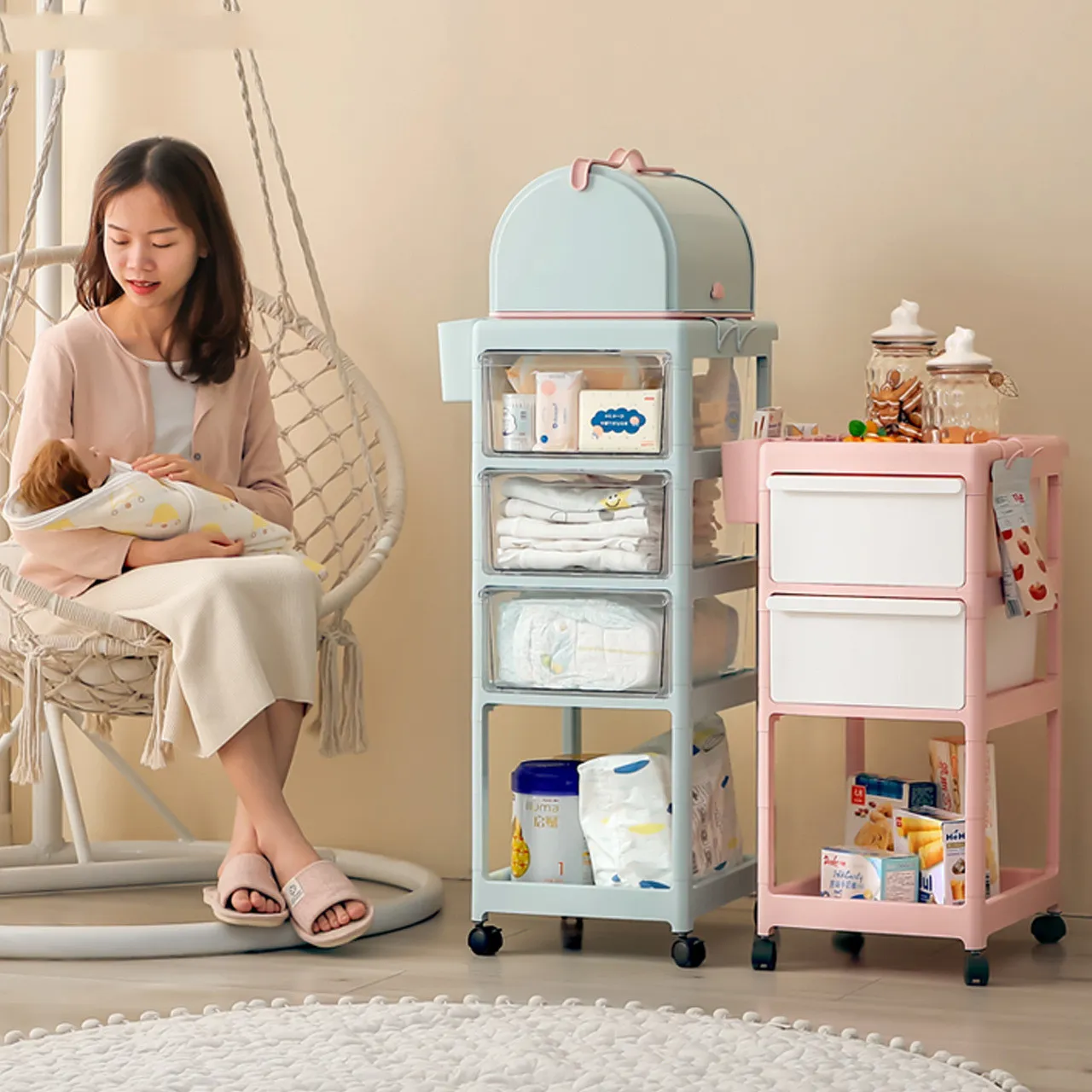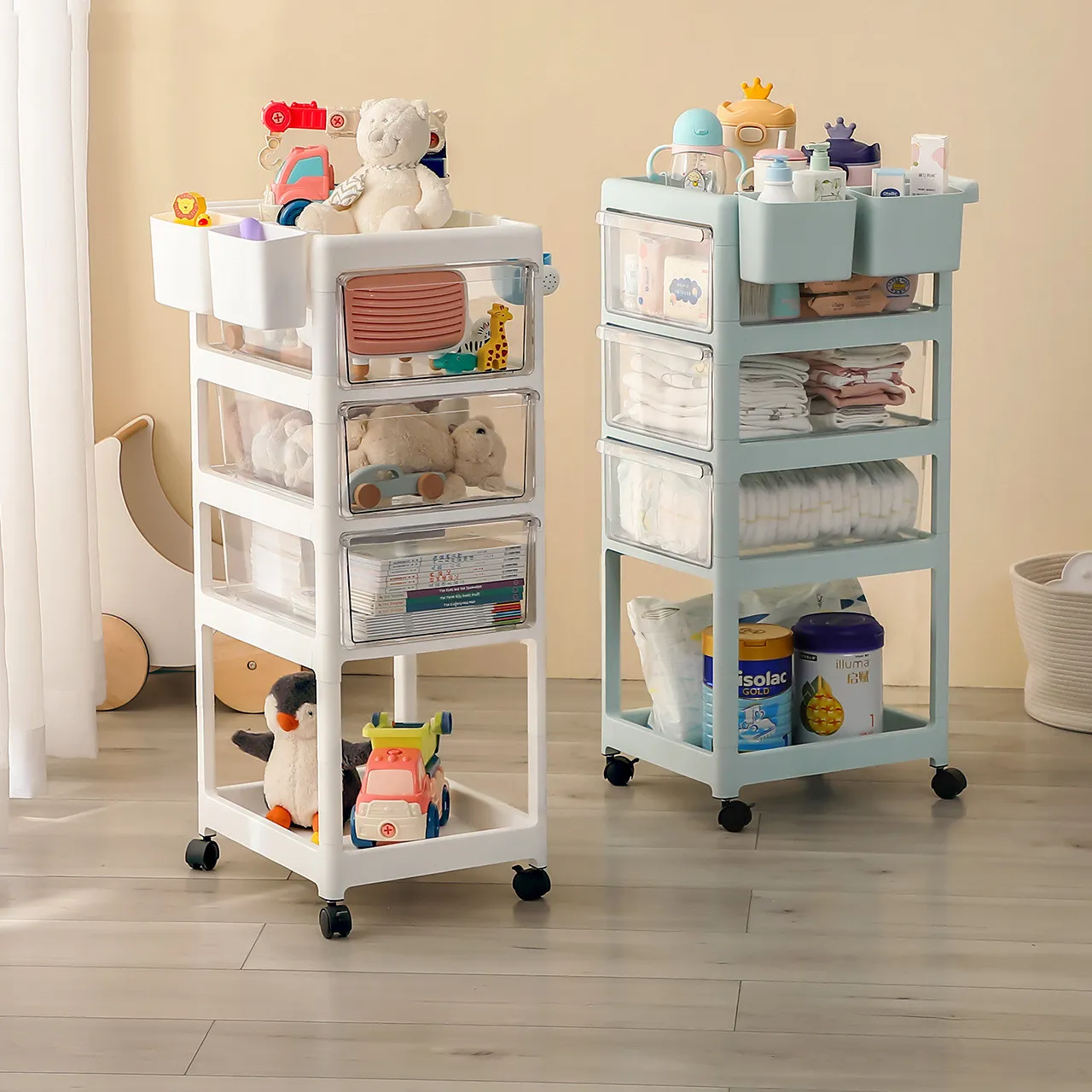 Color: 4th layer - Su Beiqing [3 semi transparent drawers+small cirrus milk bottle box] with baby package