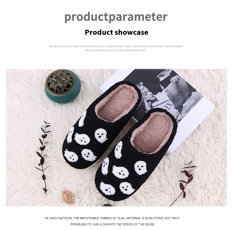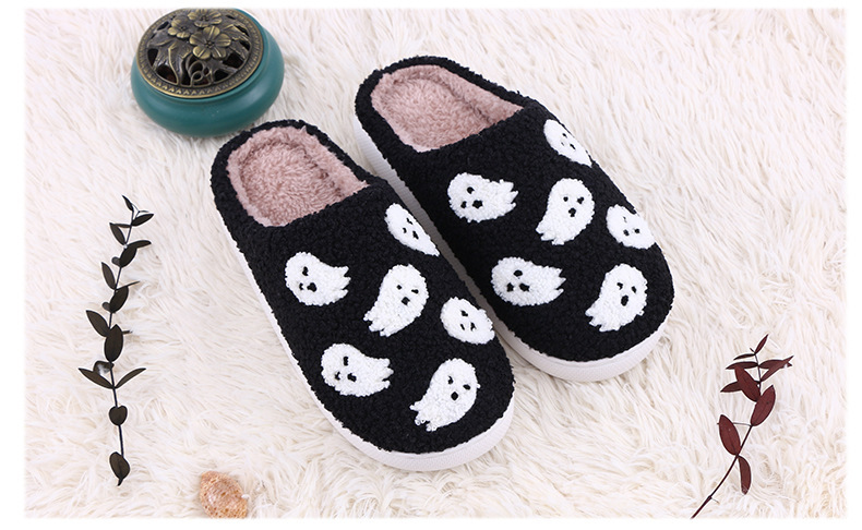 Design and Material These slippers are made from high-quality plush cotton, offering a soft and comfortable feel that your feet will love. The cute ghost cartoon design adds a fun and festive touch, making these slippers a great choice for Halloween or year-round wear. The upper material is plush, providing a luxurious texture, while the interior is lined with warm, breathable cotton to keep your feet snug during the colder months.