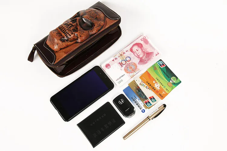 Cowhide Skull Ghost Head Men's Zipper Wallet
