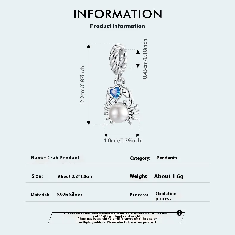 Crab Pearl Pendant S925 Silver Bead Accessories