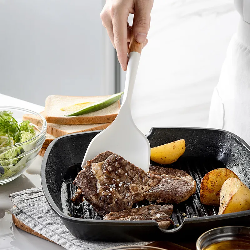 Applications of the Creamy White Wooden Handle Silicone Kitchenware Set