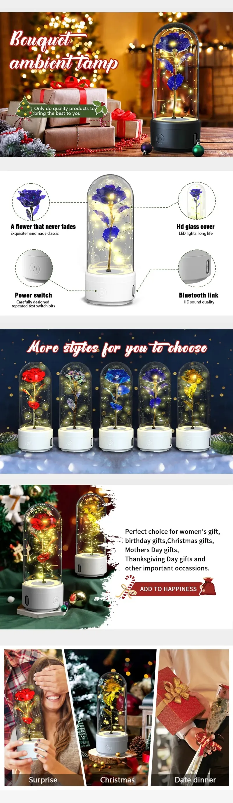 Looking for a thoughtful gift? The Creative 2-in-1 Rose Flowers LED Light and Bluetooth-Compatible Speaker makes an excellent present for birthdays, anniversaries, or housewarmings. Its unique design and multifunctionality are sure to impress any recipient.