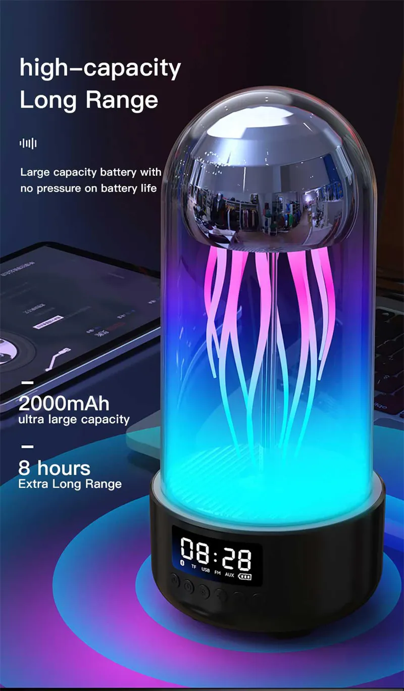 Creative 3in1 Colorful Jellyfish Lamp With And Bluetooth Speaker Clock stereo Breathing Light