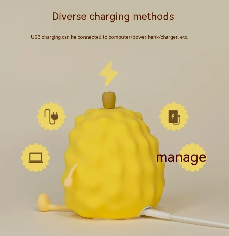 The Creative Birthday Gift Durian Silicone Night Light Desk Lamp is a charming and functional addition to any space. With its unique durian-inspired design, adjustable brightness, and energy-efficient LED lighting, it’s perfect for creating a cozy, playful atmosphere in your home or office. Whether for yourself or as a thoughtful, creative gift, this lamp is sure to brighten up any room with its warm glow and fun design.