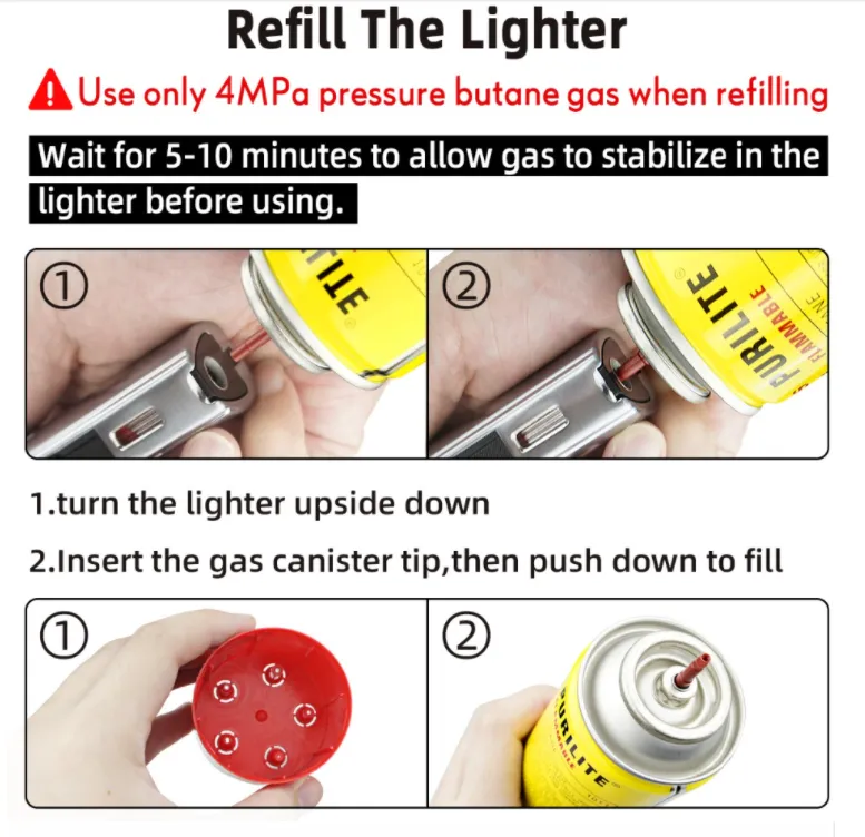 The double fire feature generates two powerful blue flames, providing a strong, concentrated heat source that can withstand wind, making it perfect for outdoor activities like camping, hiking, or lighting up in breezy conditions. The windproof design ensures that you’ll never struggle to light up in unfavorable weather. Its inflatable, refillable function ensures you can easily refill the lighter, allowing for long-term use.