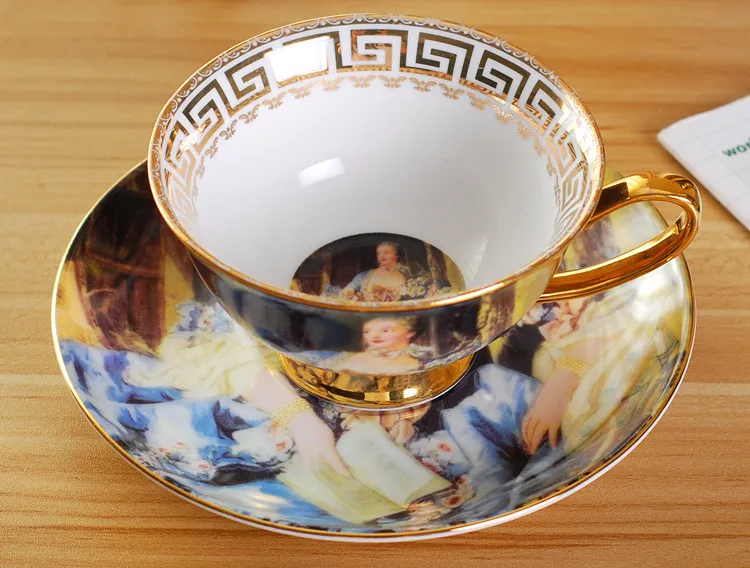 Creative Bone China Coffee Cup And Plate, Retro And Luxury