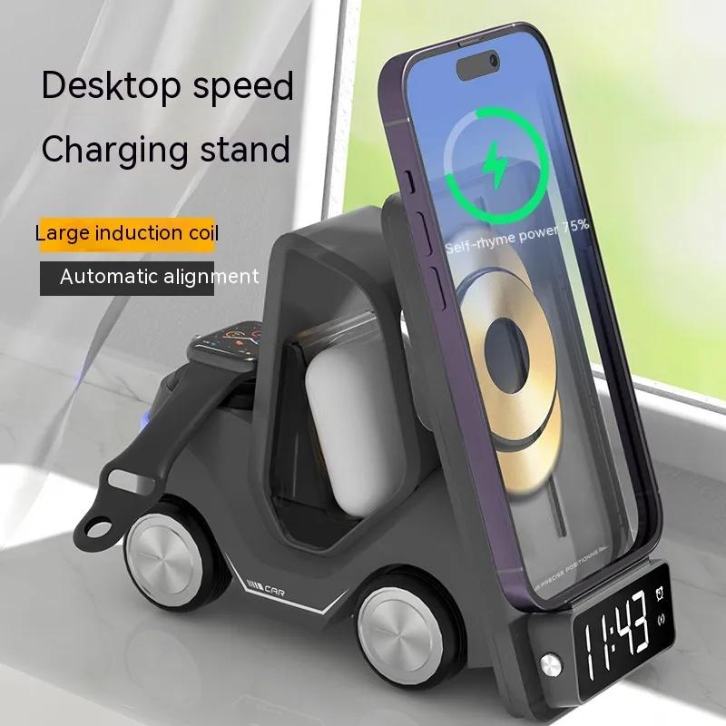 This creative car external desktop stand is perfect for anyone who values convenience and style. Its compact design fits seamlessly into any office or home environment, while the wireless fast charging feature ensures that your devices stay powered up throughout the day. Whether you're using it to charge your iPhone, Samsung Galaxy, or other Qi-enabled smartphones, this charging stand provides a reliable and stylish solution.