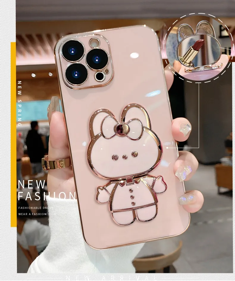 Creative Cartoon Rabbit Stand Mirror Phone Case