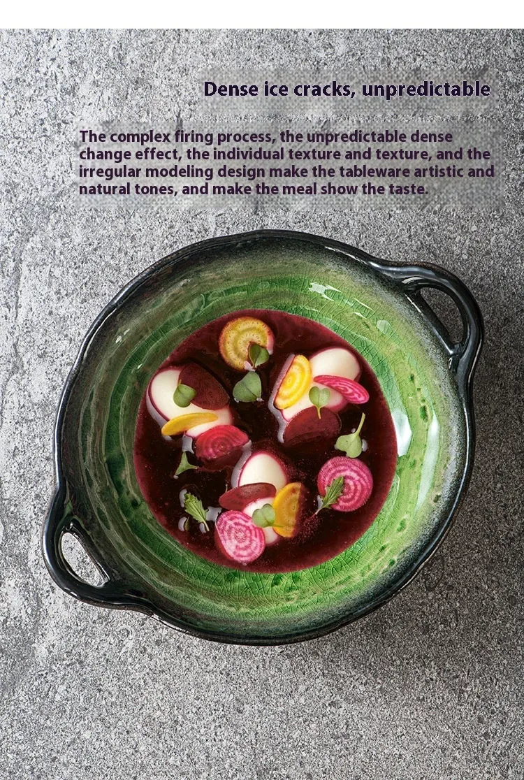 Creative Ceramic Crackle Glaze Binaural Good-looking Household Dinner Plate