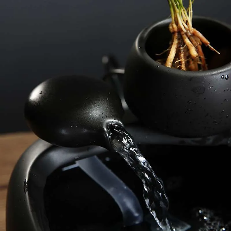Creative Ceramic Flowing Water Fountain Ornament with Atomizing Humidifier