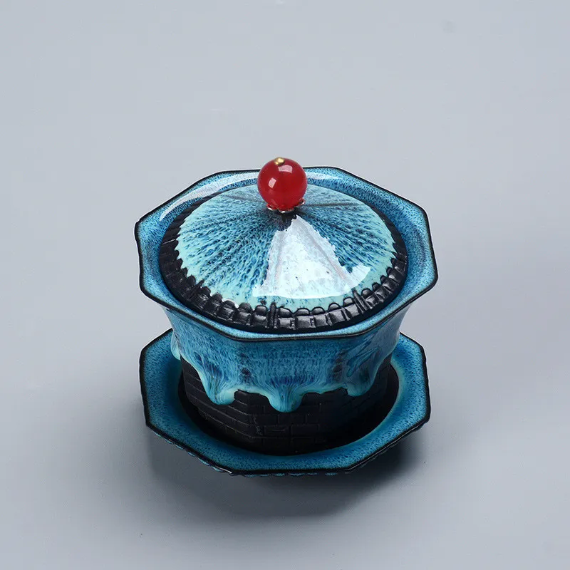 1 x set = 6 x tea cups + 6 x tea trays + 1 x Gaiwan + 1 x bag