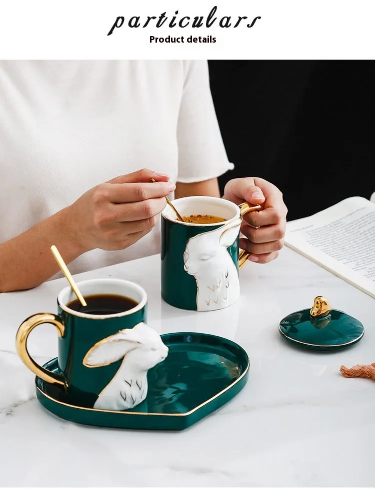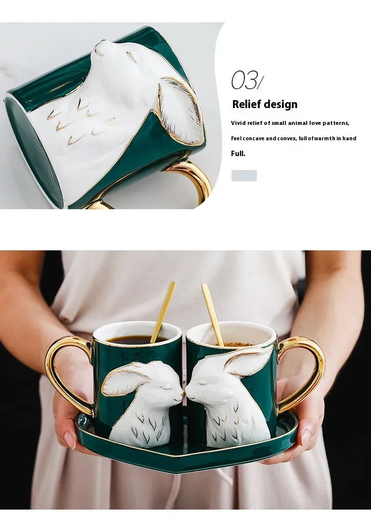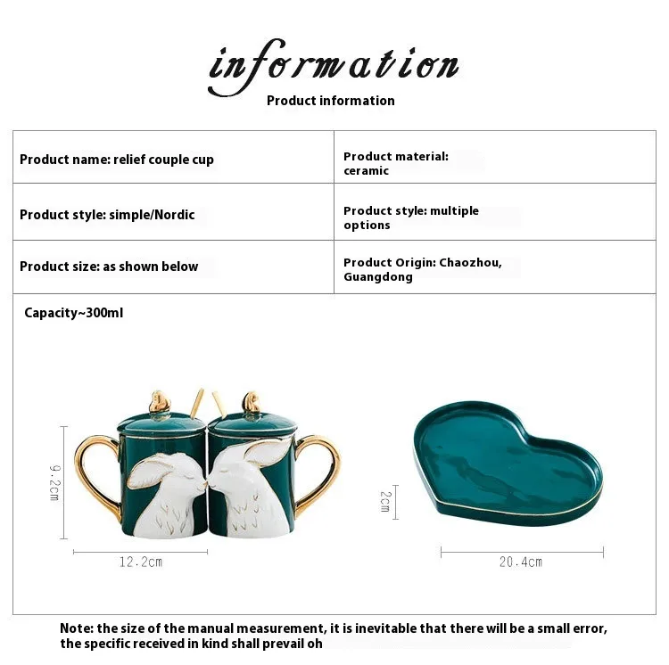Color: A deer with couple's cups (2 spoons with lid and 1 plate gift box), kissing rabbit couple's cups (2 spoons with lid and 1 plate gift