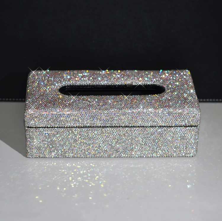 Not only does it provide a practical solution for storing tissues, but it also serves as a chic decor piece that will catch the eye of anyone who enters the room. The rhinestones add a touch of elegance, making it perfect for those who appreciate luxury and refinement in their home accessories.