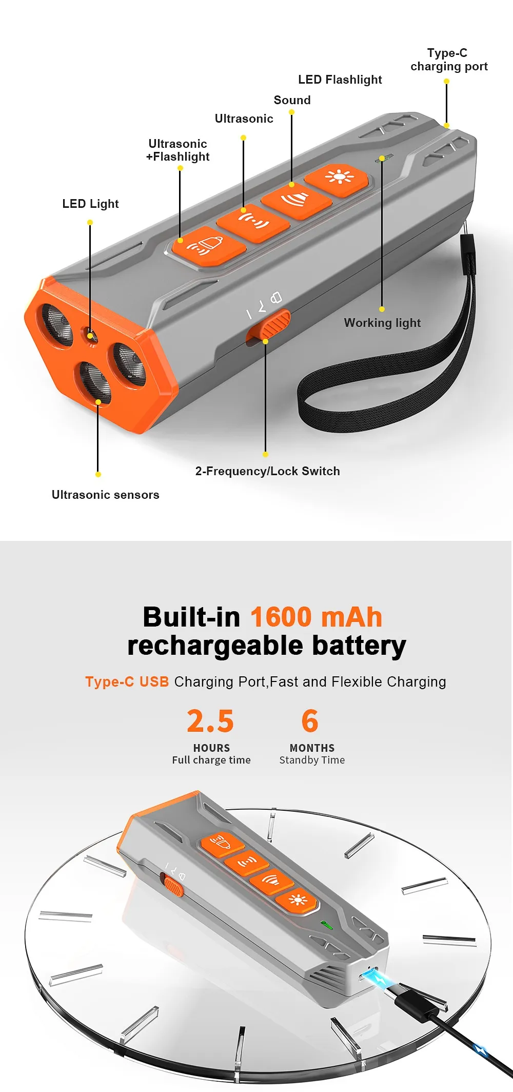 - High-Frequency Sound Waves: Deters unwanted behaviors without causing harm.