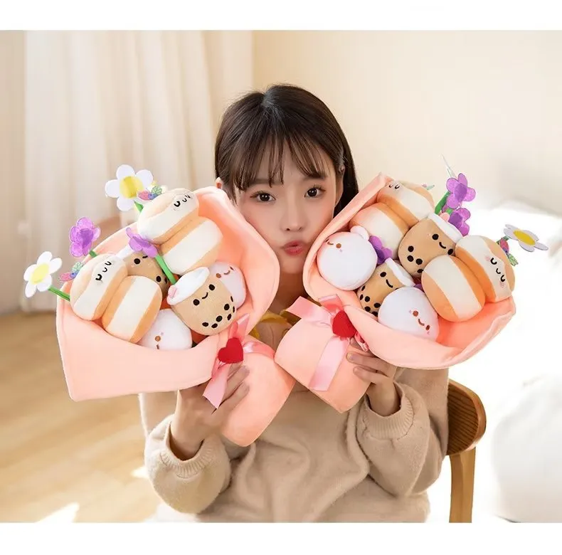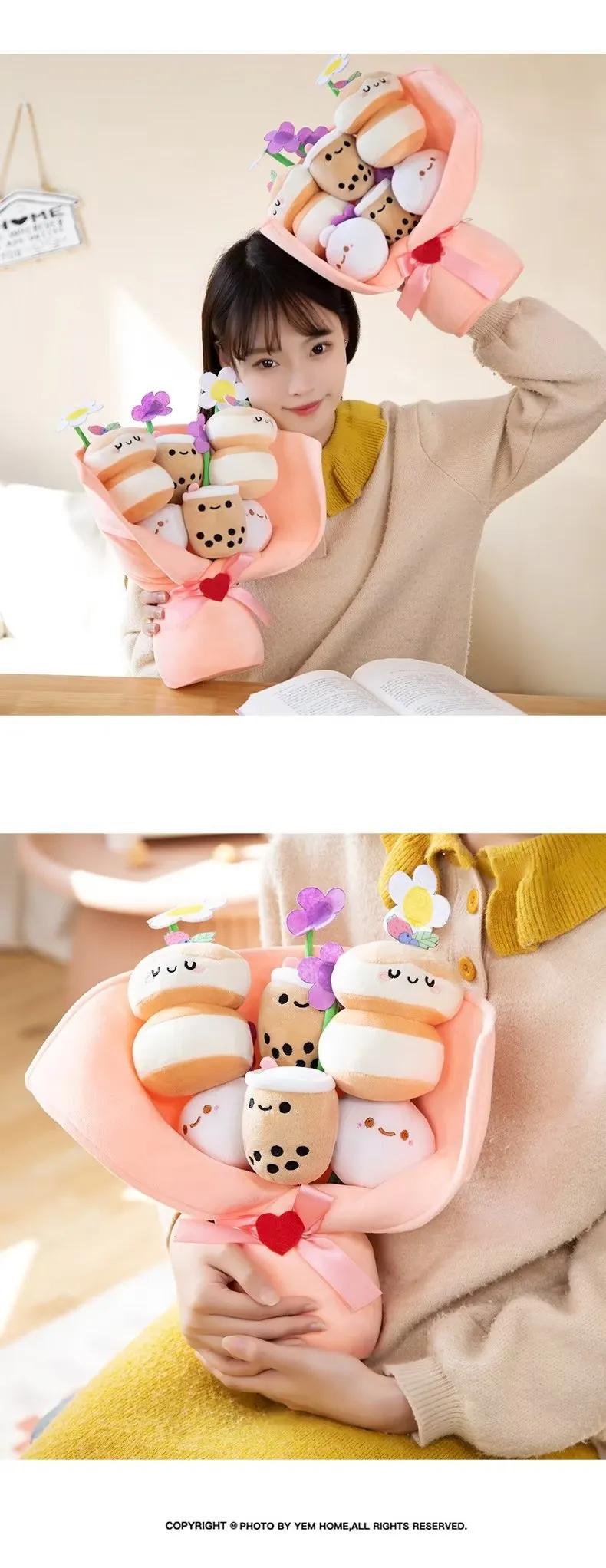 Creative Milk Tea Bouquet Pillow Plush Toy