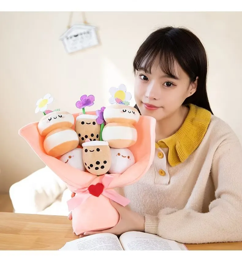 The Creative Milk Tea Bouquet Pillow Plush Toy is a perfect blend of comfort, creativity, and style. With its