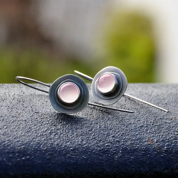 Creative Pink Moonstone Long Earrings Women's Elegant Geometric