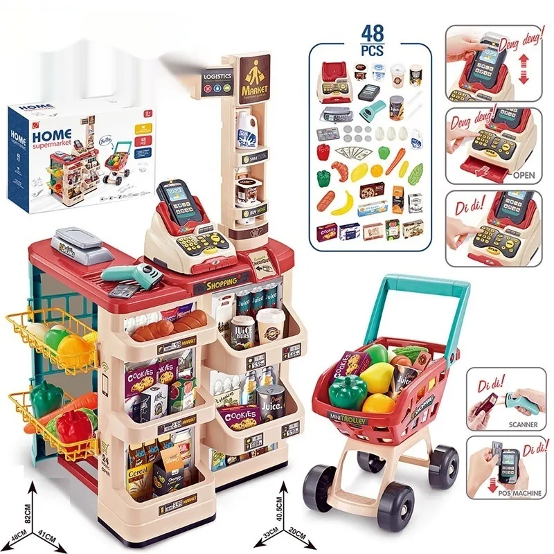 Cross-border Children's Simulation Supermarket Table Shopping Cart Playhouse Set Scan Credit Card Shopping Cashier Supermarket Toys