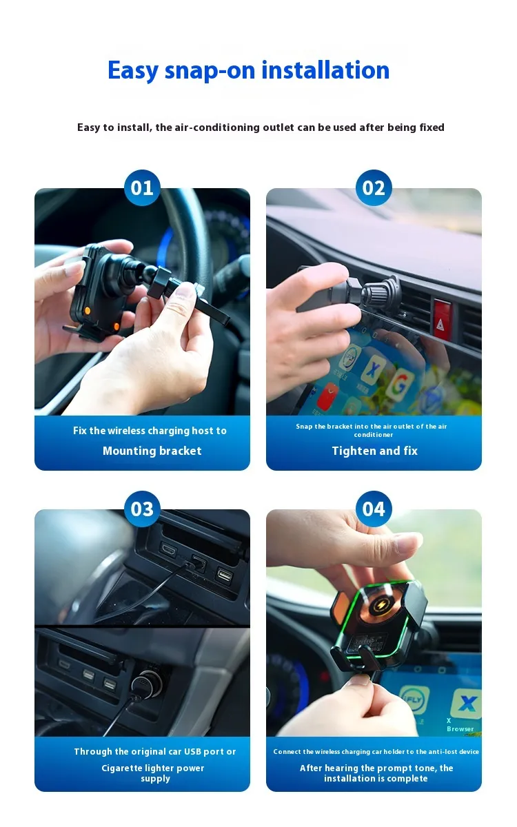 This on-board bracket is crafted with high-quality materials to ensure stability and long-lasting performance. Its wireless charging capability allows for fast and cable-free power, while the positioning feature keeps your device securely in place. The integrated anti-loss alarm alerts you if the phone is removed unexpectedly, providing peace of mind during travel.