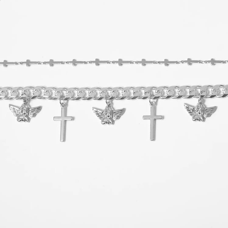 Cross chain angel necklace