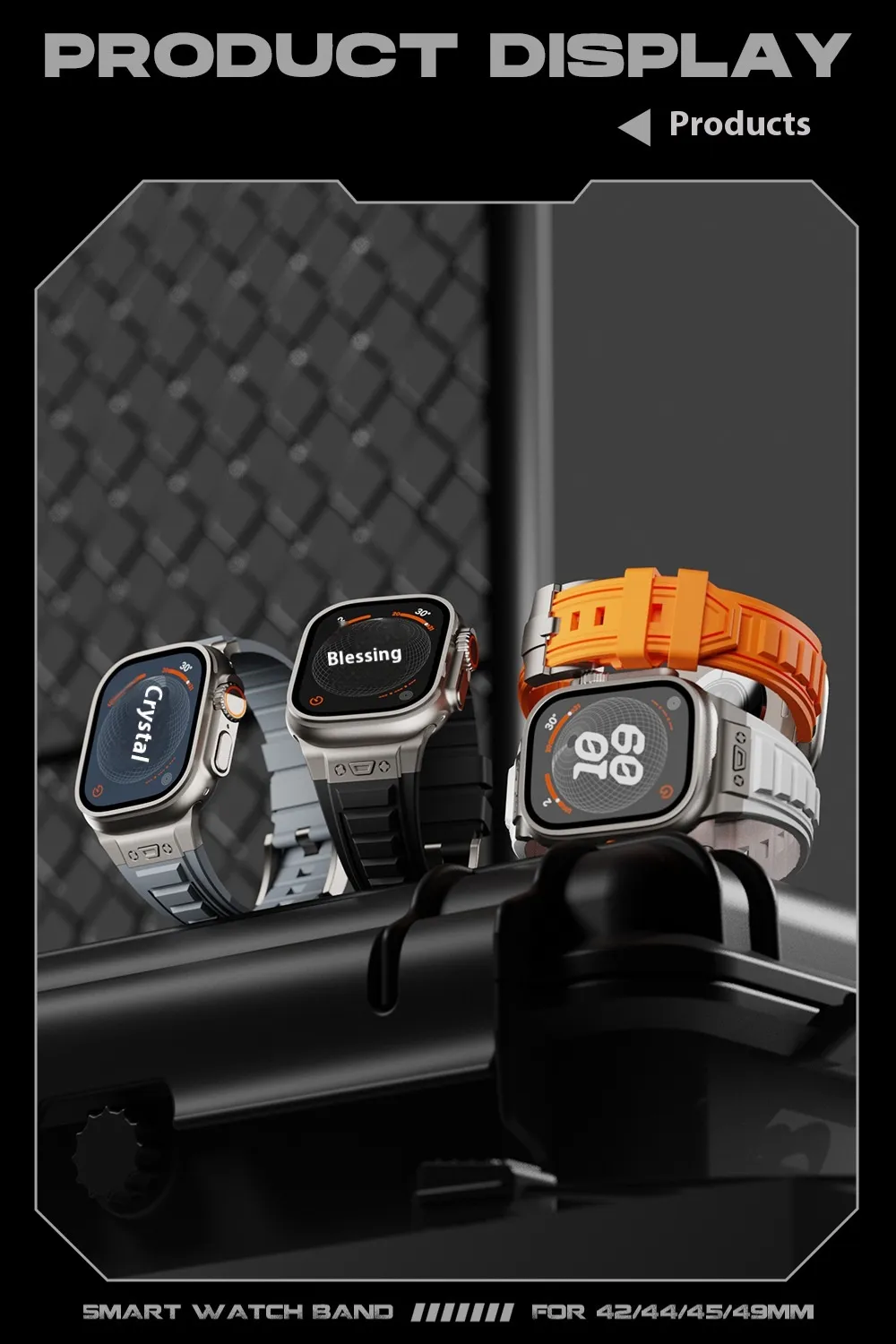 Cross Nail High Elastic Silicone Strap Iwatch1-9 Metal Folding Buckle