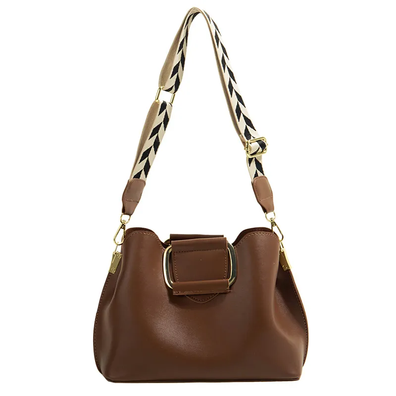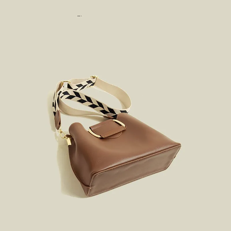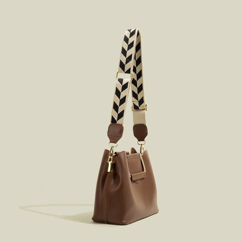Crossbody Wide Shoulder Strap Portable Bucket Bag