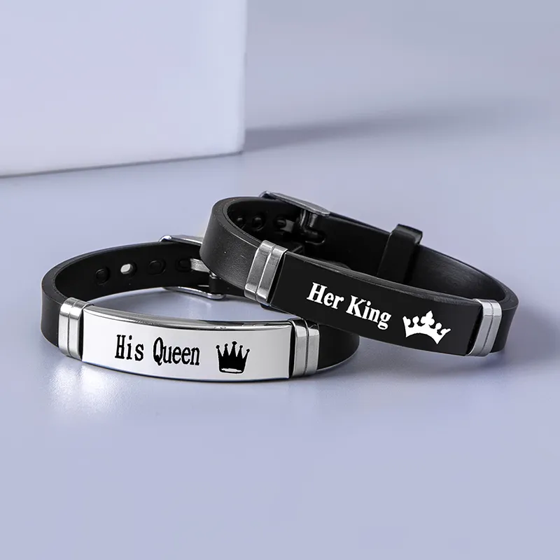 Celebrate your love in style with the Crown Her King & His Queen Stainless Steel Silicone Couple Bracelet Bangle Set. Perfect as a gift or personal keepsake, this bracelet set combines timeless design with modern functionality. Order now and wear your love proudly!