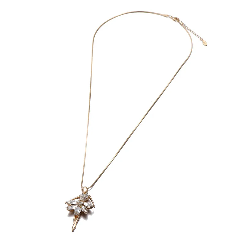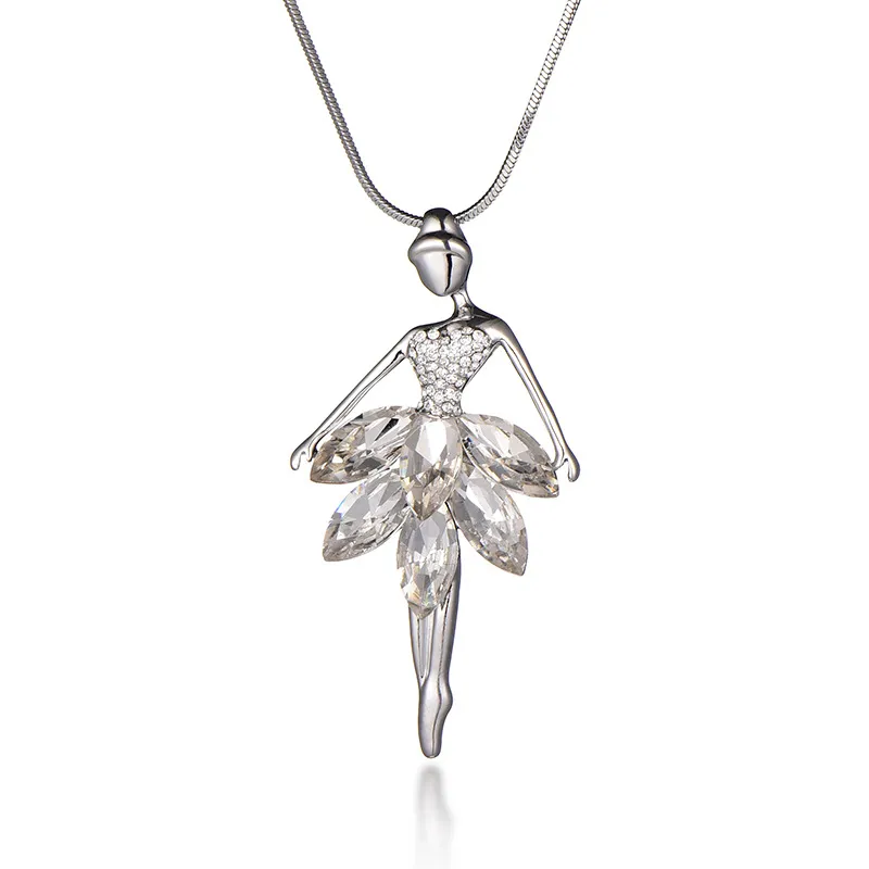 Crystal ballerina girl pendant sweater chain
