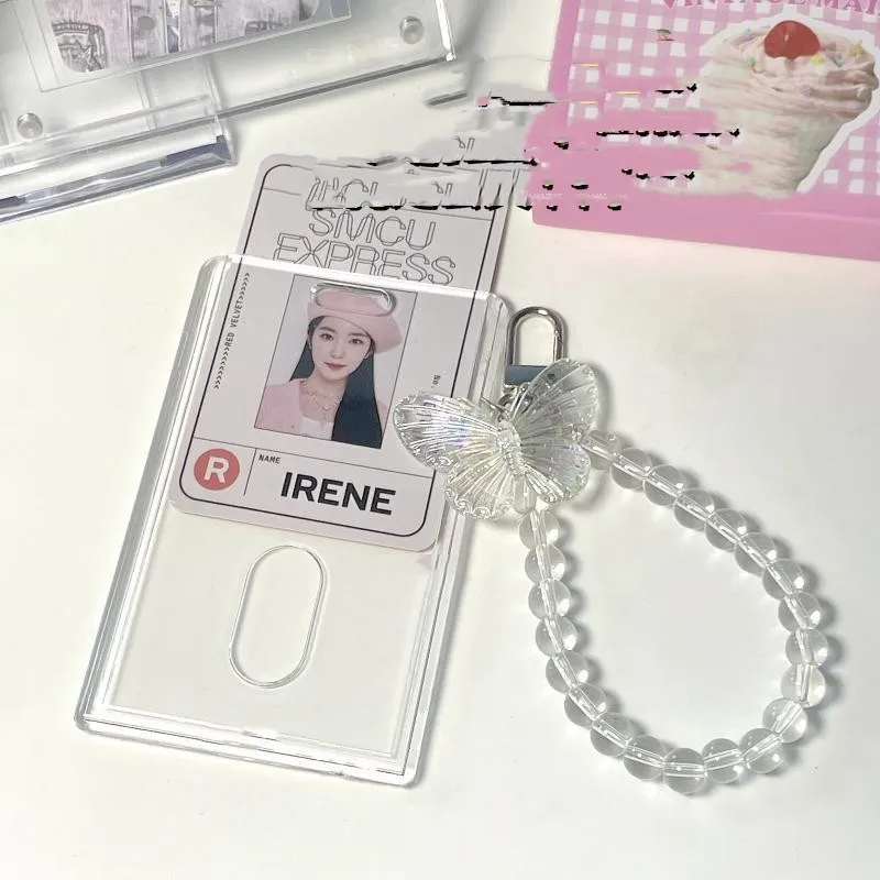 Crystal Butterfly Keychain Slide Cover Transparent Acrylic Card Holder