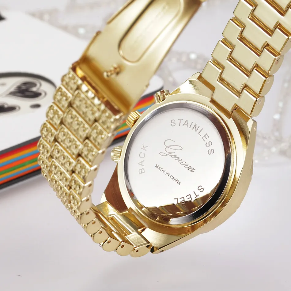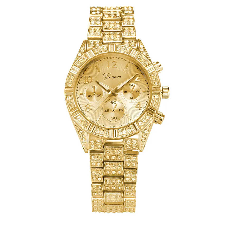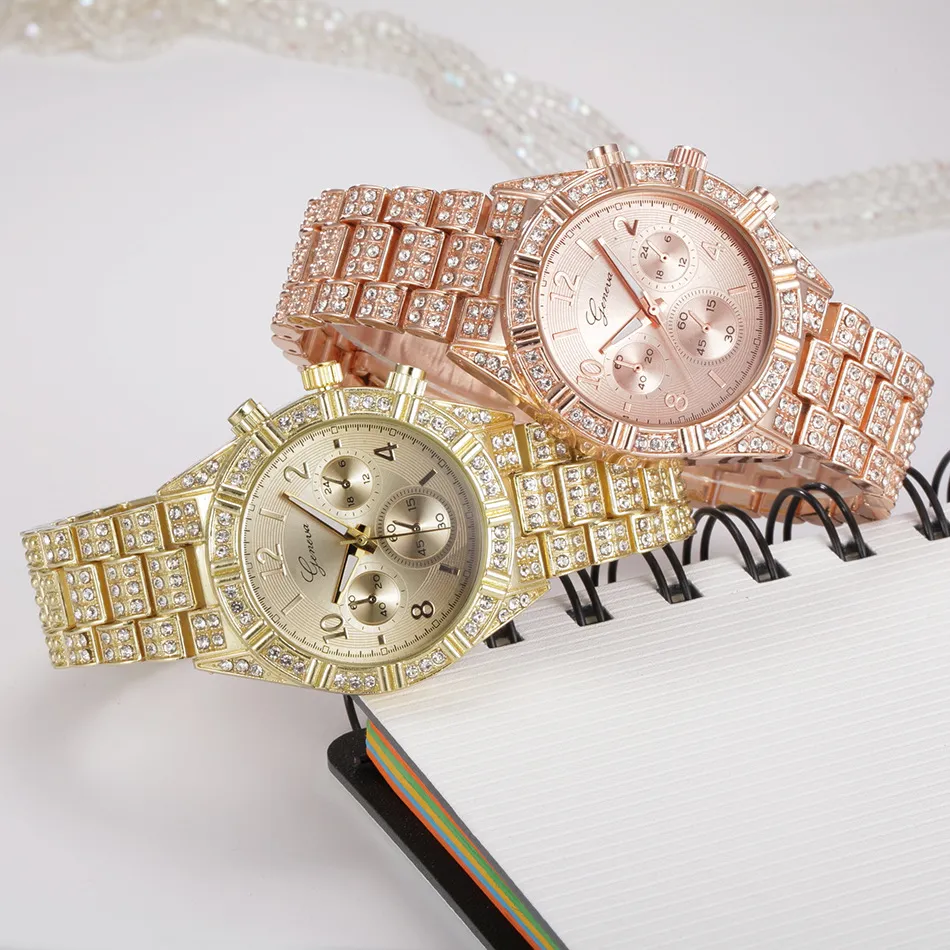Fashion Stainless Steel Geneva Luxury Women Crystal Quartz Analog Wrist Watch