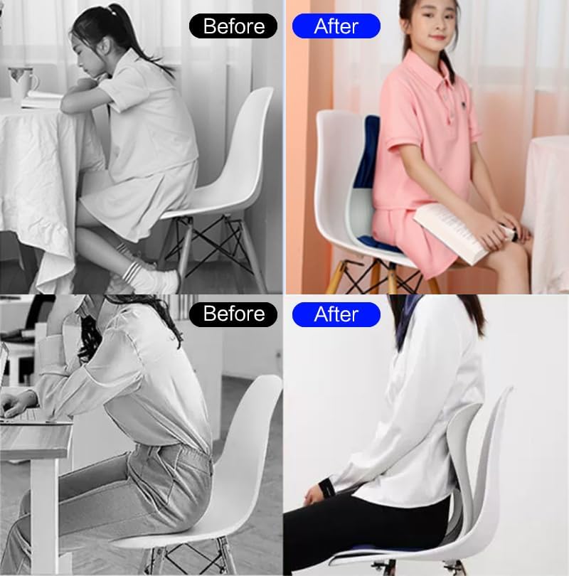 - 2-in-1 Posture Corrector, Multi Scenario Application: The posture correction seat provides both seat cushion and lumbar support functions, and does not require frequent adjustments during use. It is suitable for various chairs, including office chairs, reading chairs, floor chairs, computer chairs, gaming chairs, car seats, desk chairs, school chairs, sofas, sports stands, etc