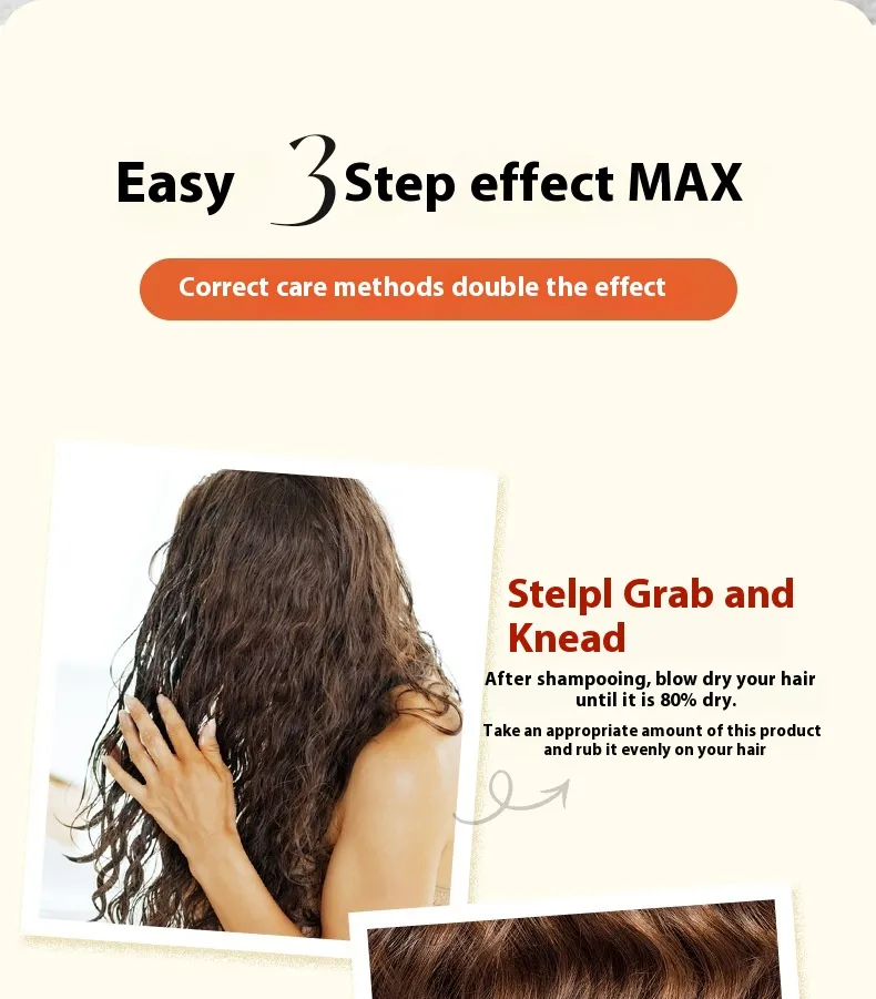 Our Curly Hair Cream provides the deep hydration that curly hair craves, preventing dryness and maintaining soft, healthy-looking curls all day. Its lightweight formula glides smoothly through your hair, providing even coverage without weighing your curls down. The result is beautifully defined, bouncy curls that are full of life, with a natural, touchable finish. Whether you wear your curls loose and voluminous or sleek and defined, this cream helps achieve a polished yet natural look.