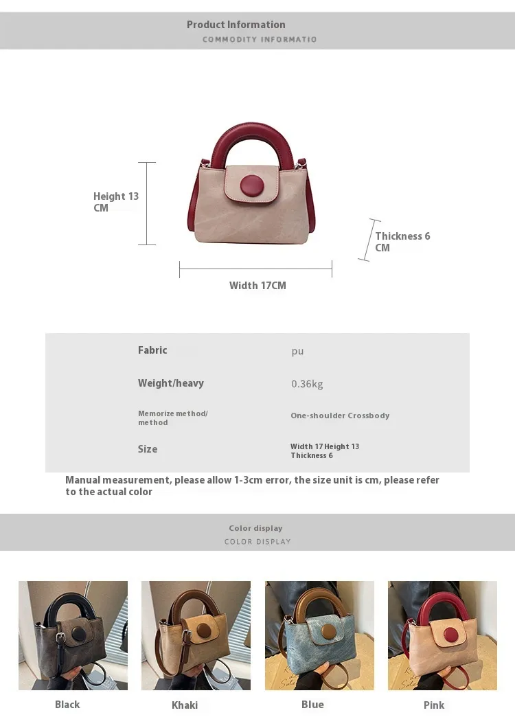 The simple yet modern design of this bag makes it easy to pair with a variety of outfits. From casual jeans and a t-shirt to a more polished office look, the Cute and Compact Contrast Color City Bag is versatile enough to suit any occasion. Its clean lines and minimalist aesthetic make it suitable for women who appreciate understated elegance.
