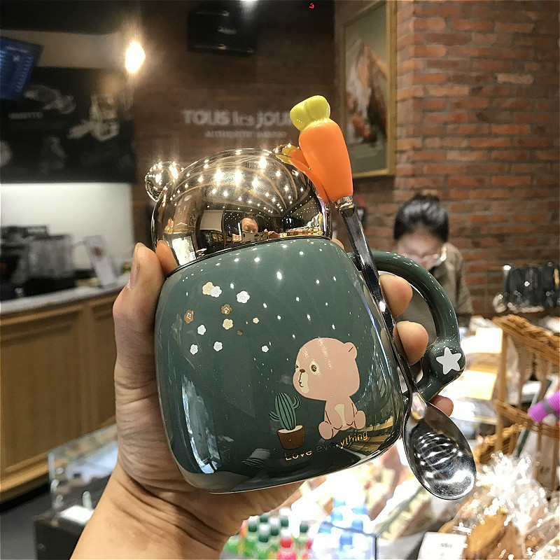 The main feature of this set is the cute bear design on the ceramic mug. The mug typically features a detailed bear face, a playful bear-shaped handle, or a full-body design that is both cute and charming. The design varies by model but maintains a whimsical and endearing appeal.